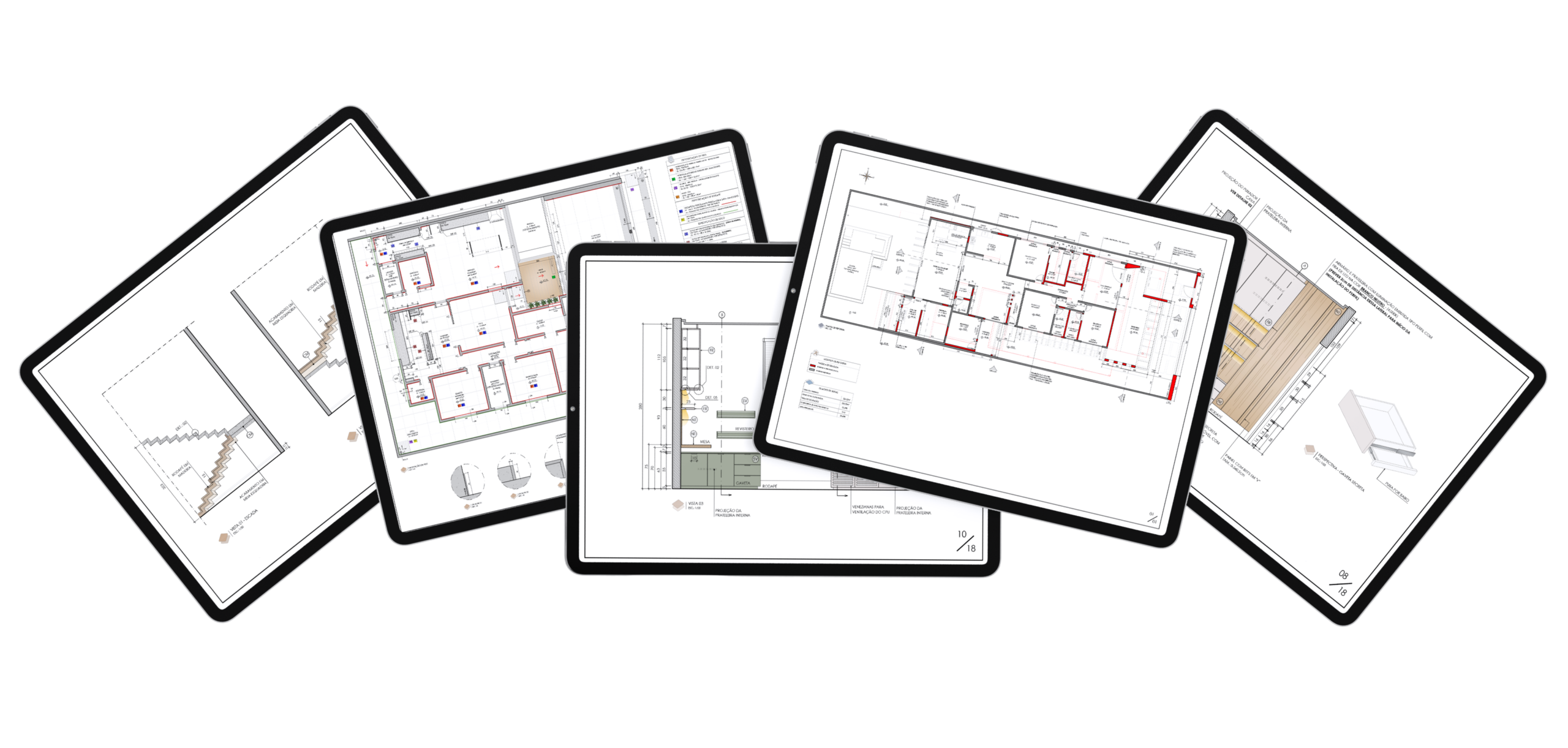 Você terá acesso a projetos executivos reais para usar como guia visual de detalhamento. Visualize como organizar notas técnicas, escalas e hierarquia de desenhos. Entenda como soluções complexas de obra são representadas de forma clara e profissional